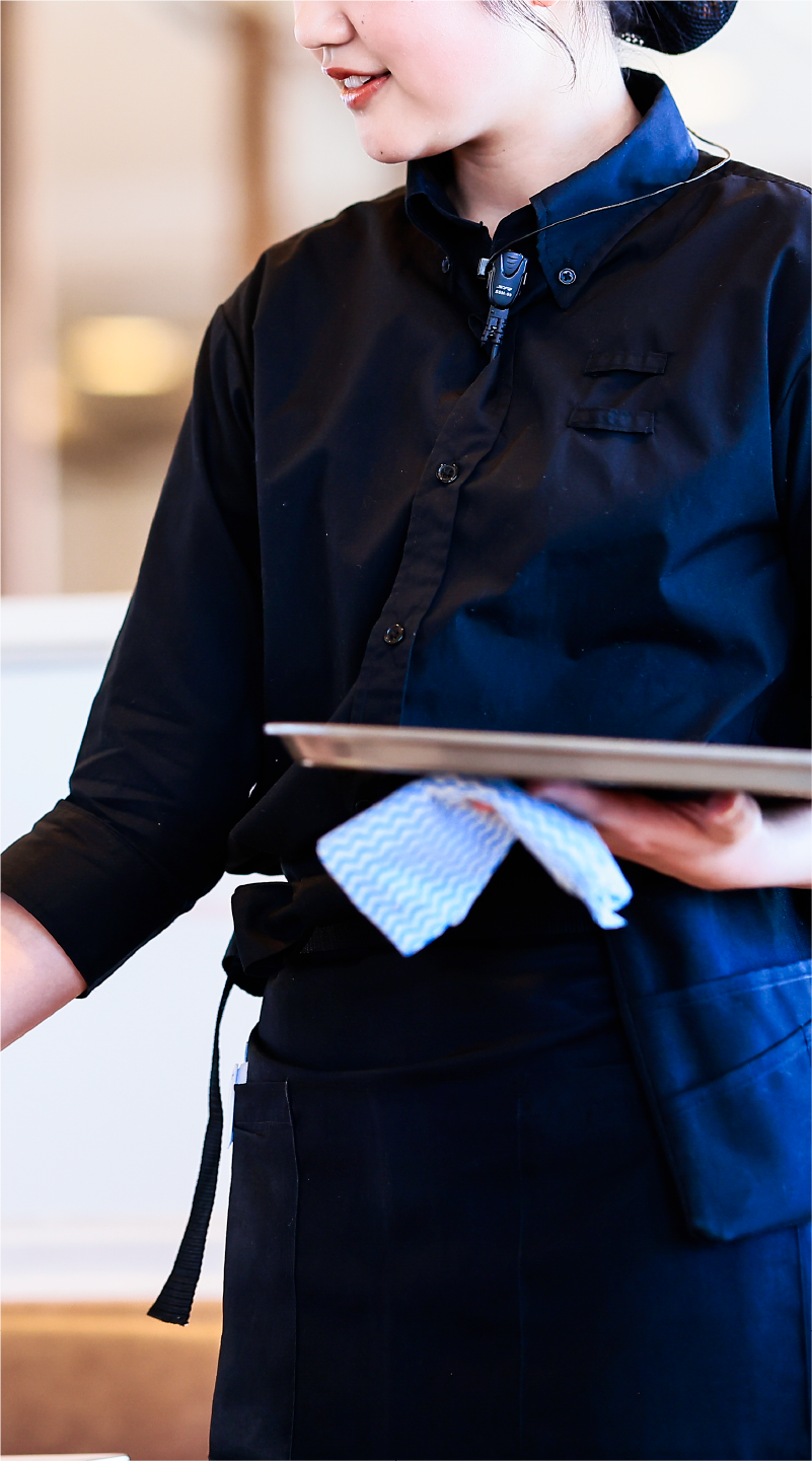 働きかたも人それぞれ。まずは洗い場作業や清掃業務など簡単作業から始めます。その後、個人ごとの特性や修得状況、理解度を確認しながら、無理のない範囲で、出来る作業を増やしていきます。慣れてくれば、調理の盛り付けやお客様へ接客することもあります。一人ひとりの取り組みが地域のお客様の笑顔につながります。