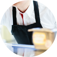 仕込みの仕事中、調理担当の仲間から感謝の言葉をもらった時、自分の仕事がお客様の笑顔に繋がっていると実感しました。